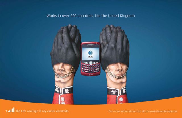Hemos sido testigos desde hace un tiempo de manifestaciones artísticas como las manos pintadas representando diversos animales, y una empresa como AT&T no ha querido ser menos en esta expresión, así que os dejo con su campaña impresa esta vez haciendo alusión a las imágenes más representativas de países como: China, México, Brasil, … en fin podéis apreciarlas y compartirlas si os gusta.